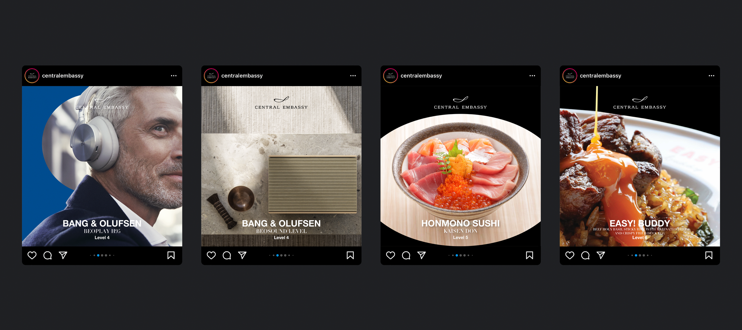 The result is a flexible visual system that supports different content types, from fashion and lifestyle to dining, while maintaining a consistent and recognizable brand presence across social media.
